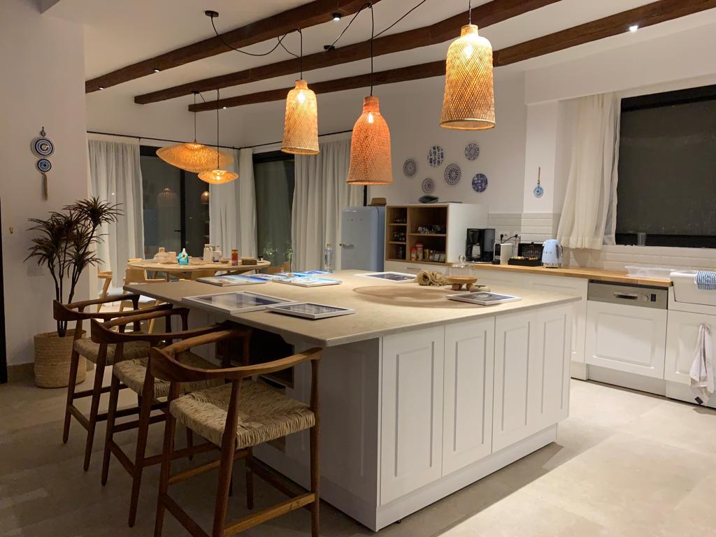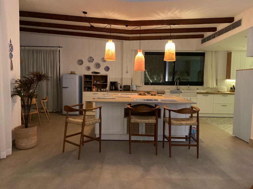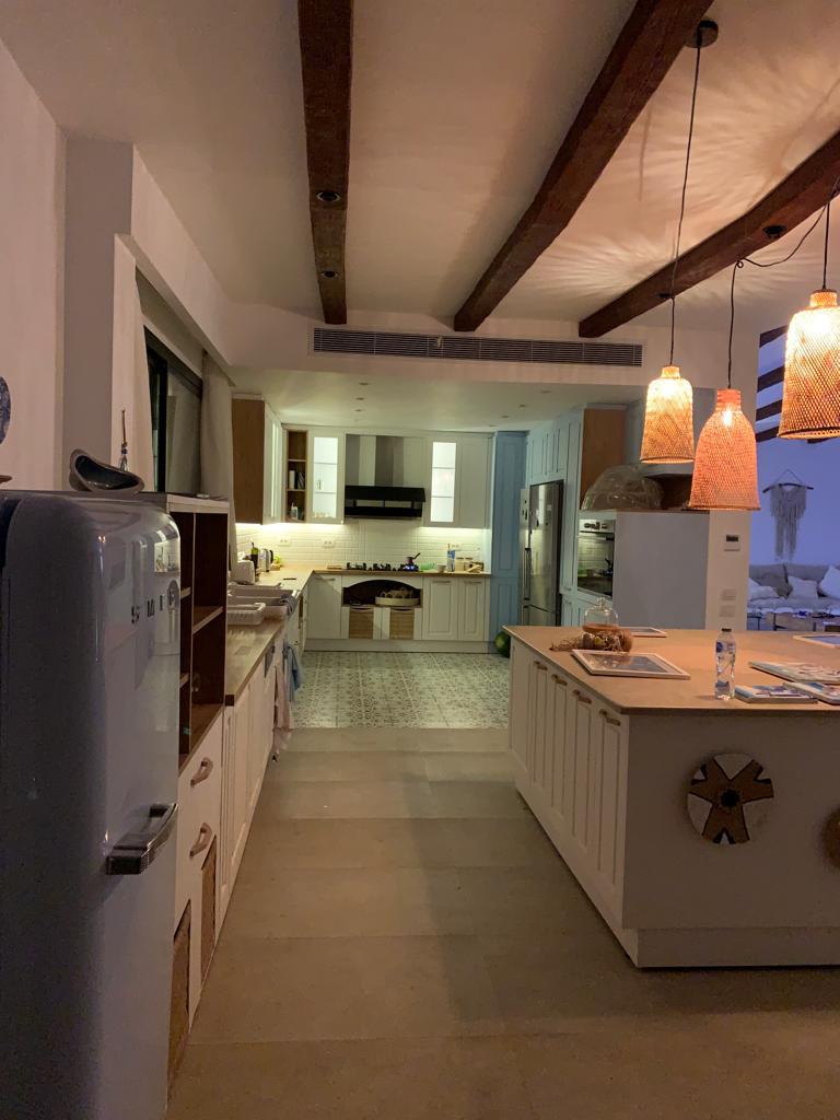 The open kitchen plan in a Mediterranean feel in addition, allowed us to achieve the feel of being connected to the outdoor with the usage op a big kitchen island make the space seem even bigger and with the big windows, achieve the overall all feel of an urban oasis.