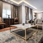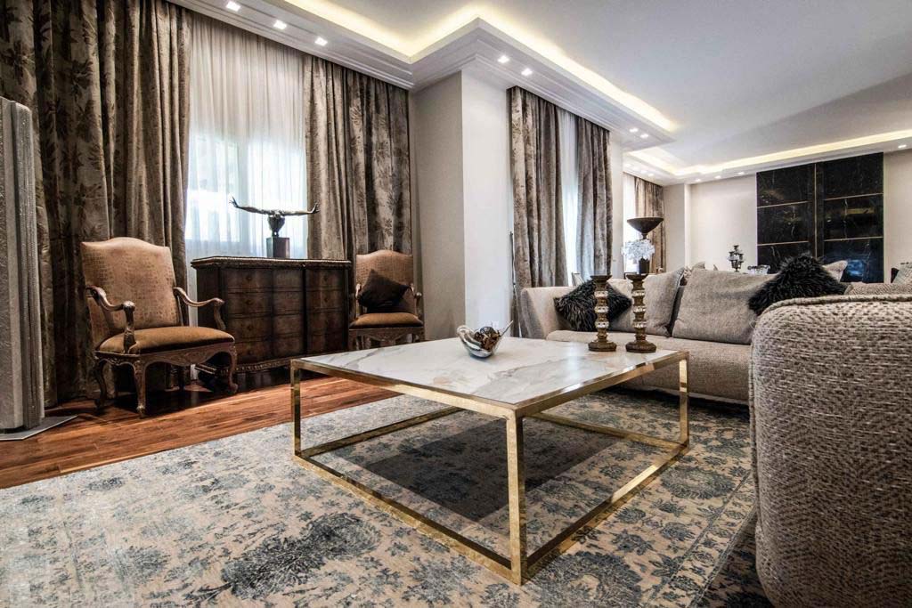 Reception Luxurious design elements and furniture in the reception and lounge area along with use of genuine wood cladding, hidden storage with a marble mounted entertainment system provides a luxurious feel while still offering al the desired function and use of this living space..