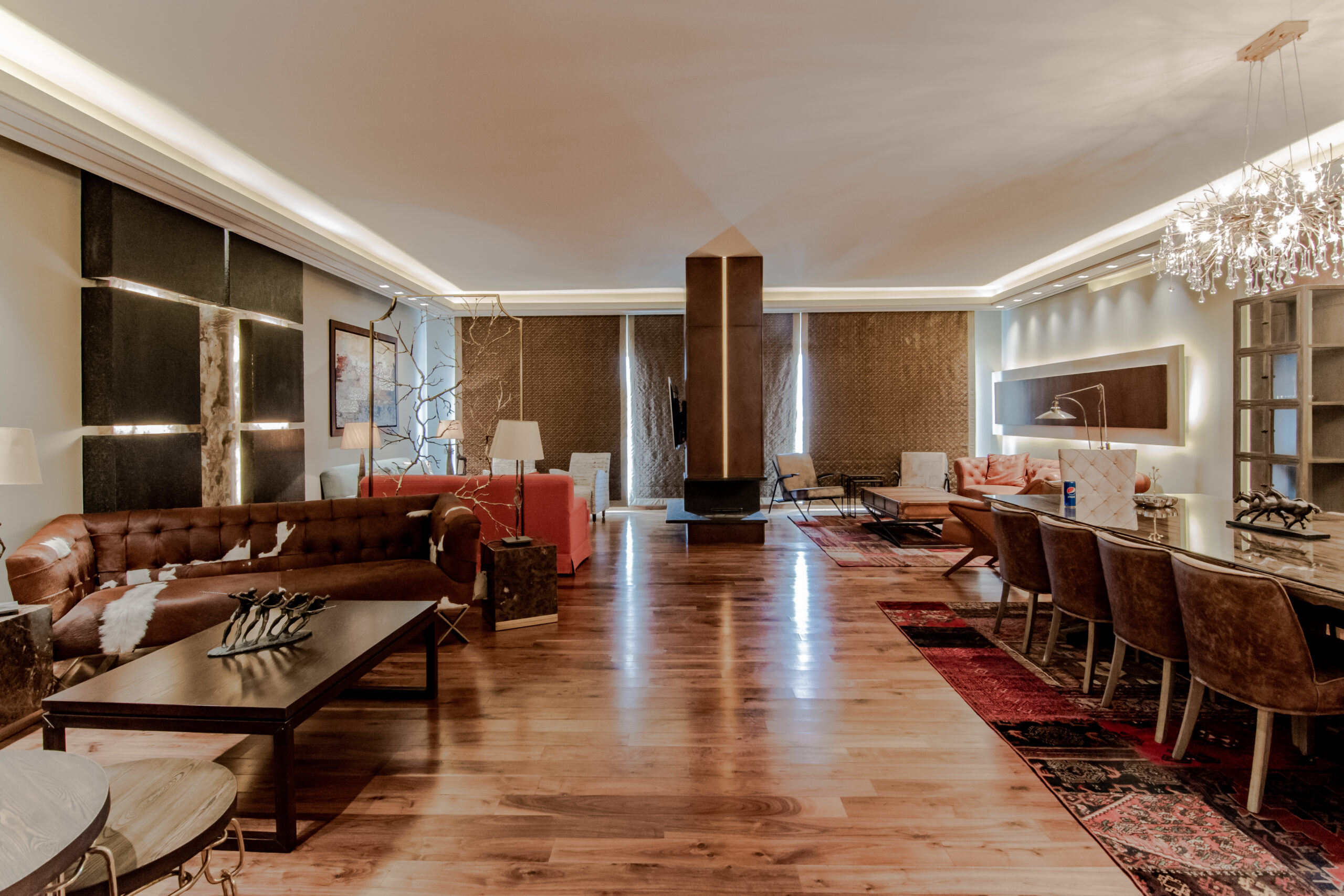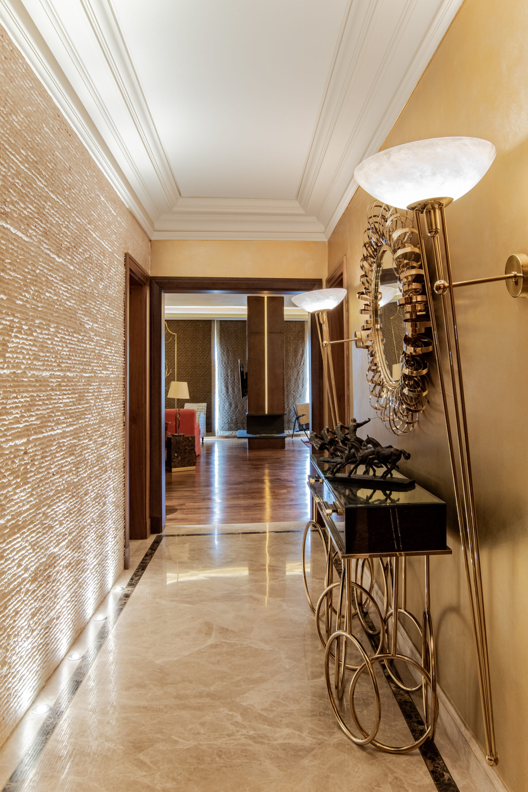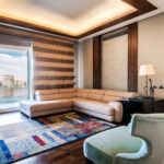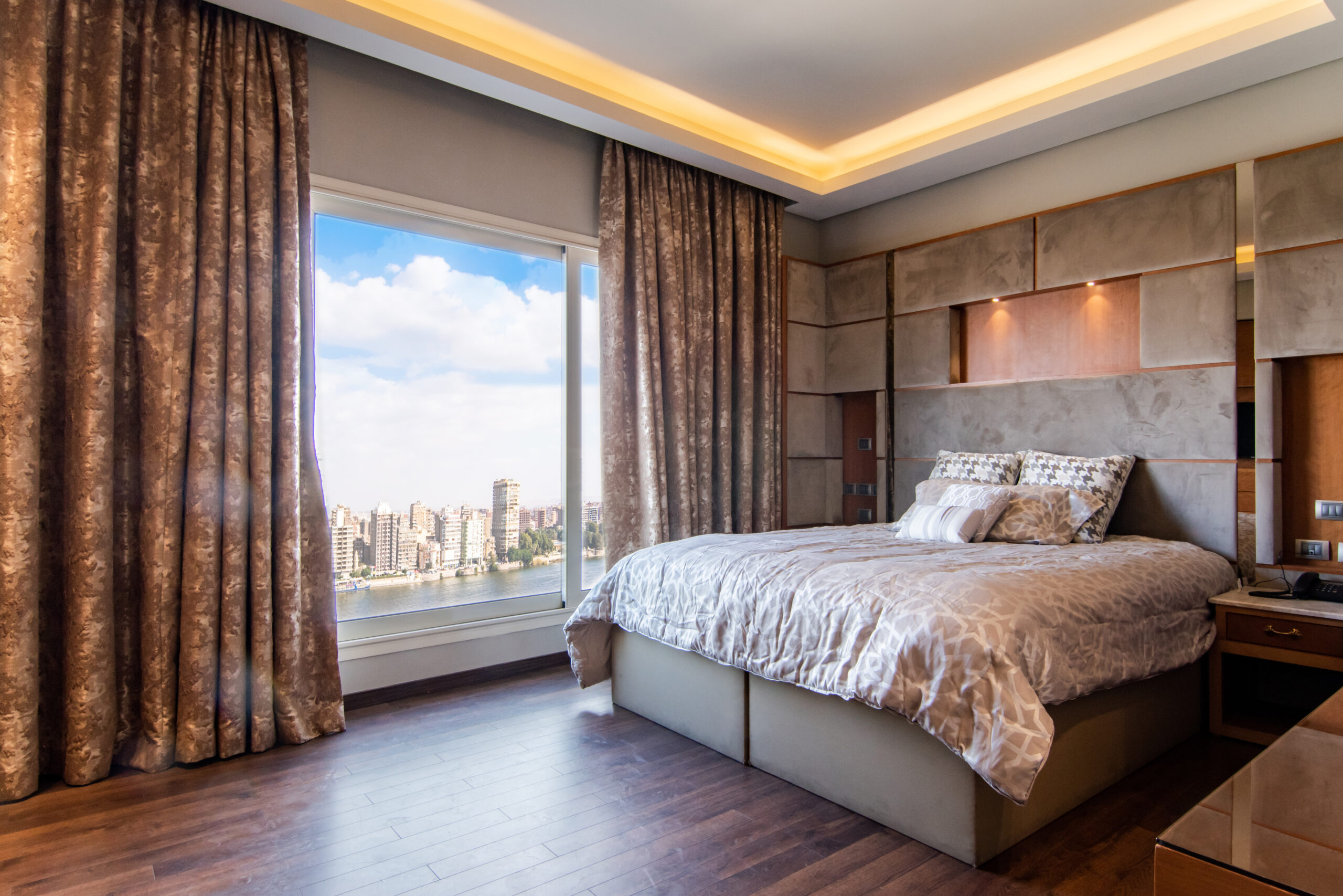 Is an apartment on the river Nile. This Luxurious apartment home with wooden cladding, various marble elements and clever use of lighting, mirrors and contemporary design elements offer a warm yet stylish contemporary living space.