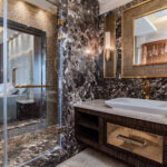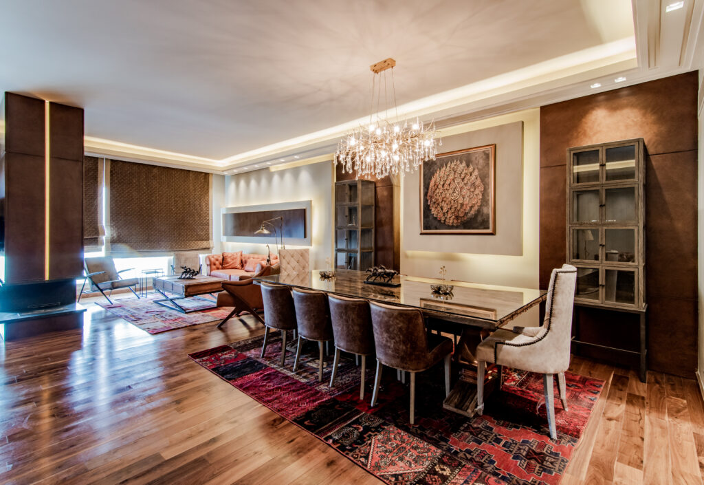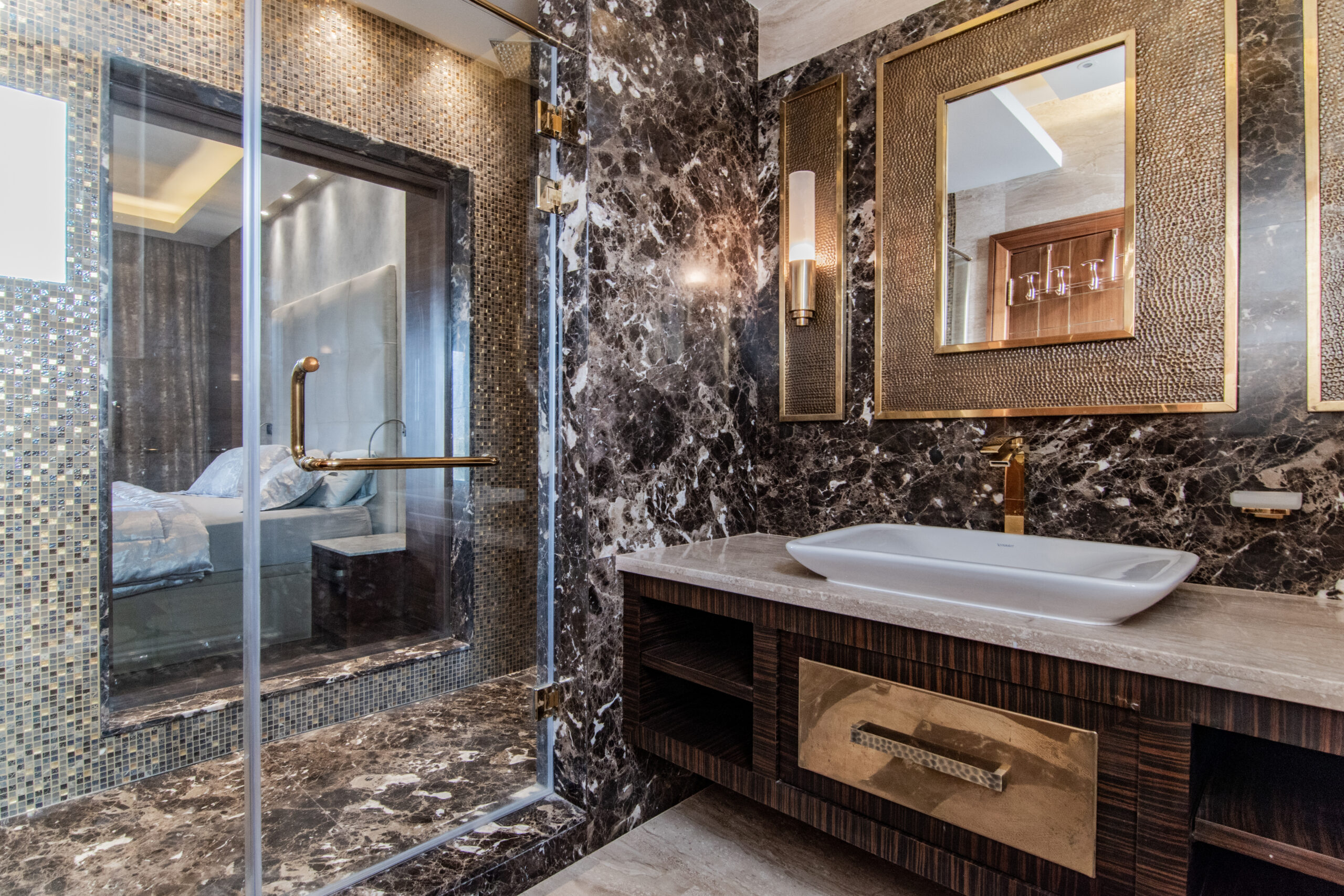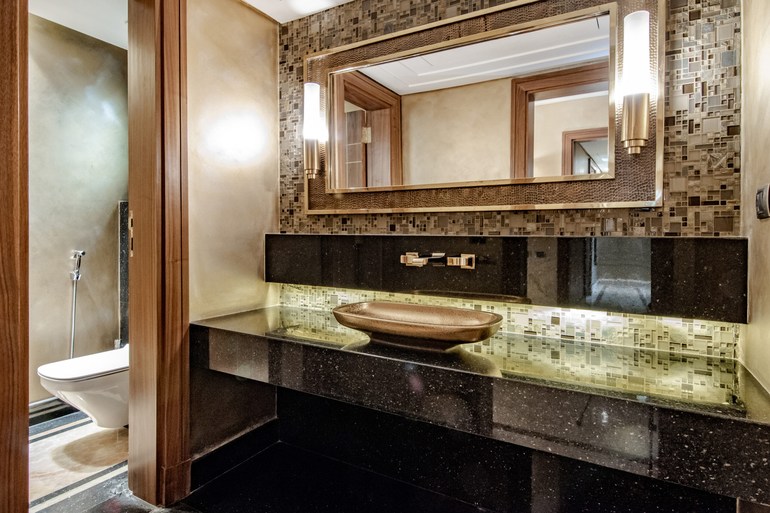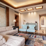 Is an apartment on the river Nile. This Luxurious apartment home with wooden cladding, various marble elements and clever use of lighting, mirrors and contemporary design elements offer a warm yet stylish contemporary living space.