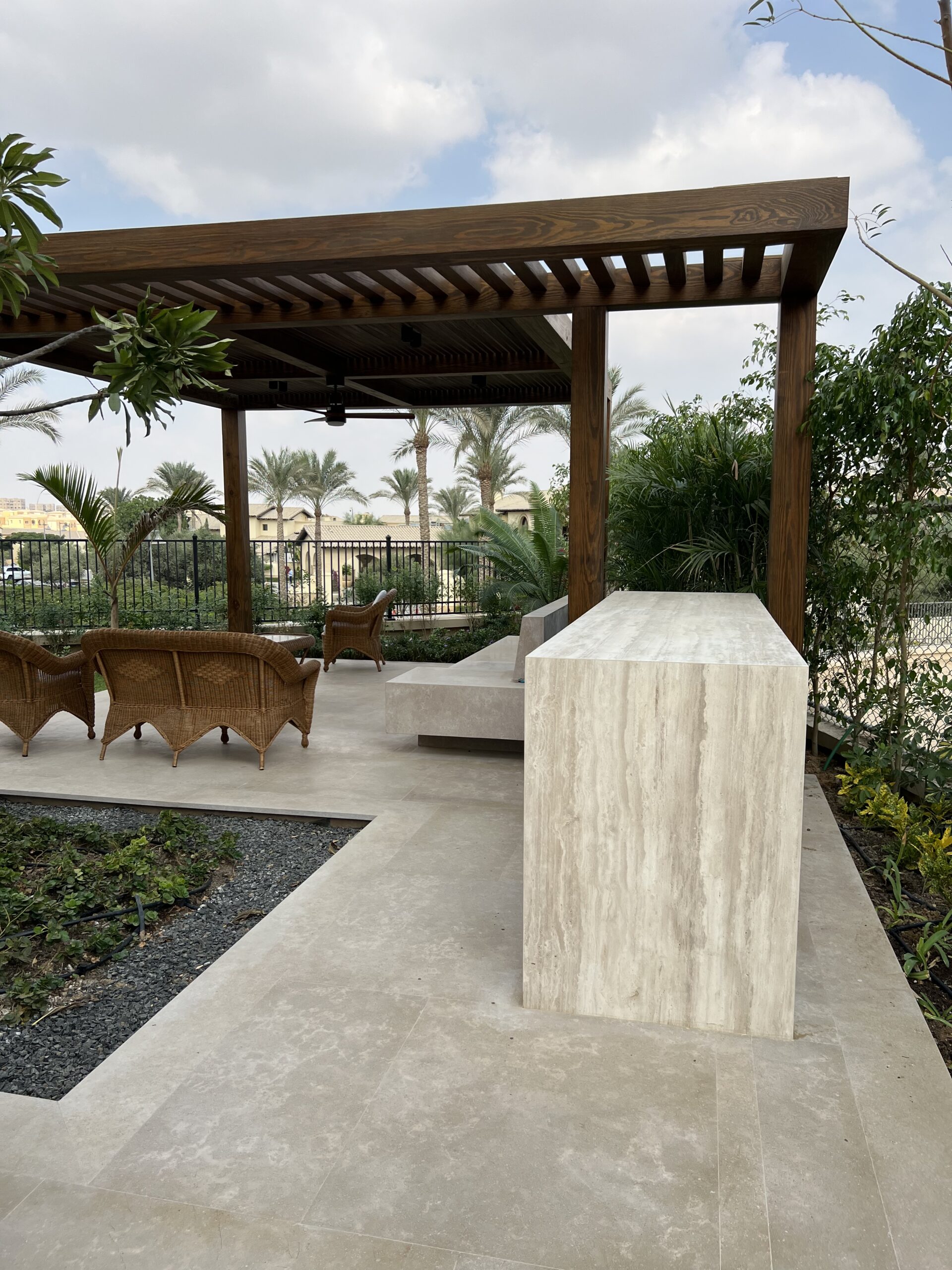 Using Marble, Wood, concrete, wate and wooden elements to produce the urban paradise in the heart of Cairo.