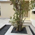 Designed by MS, the Uptown landscape showcases the quality of Core built, the result sees this magnificent, suspended pergola cantilever that embodies the modern urban design of this outdoor space.